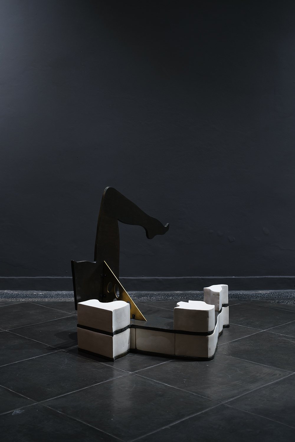 Marshmallow Leg – 2017, lime stone, wood, brass, fixings, W 100 x H 84 x D 84 cm