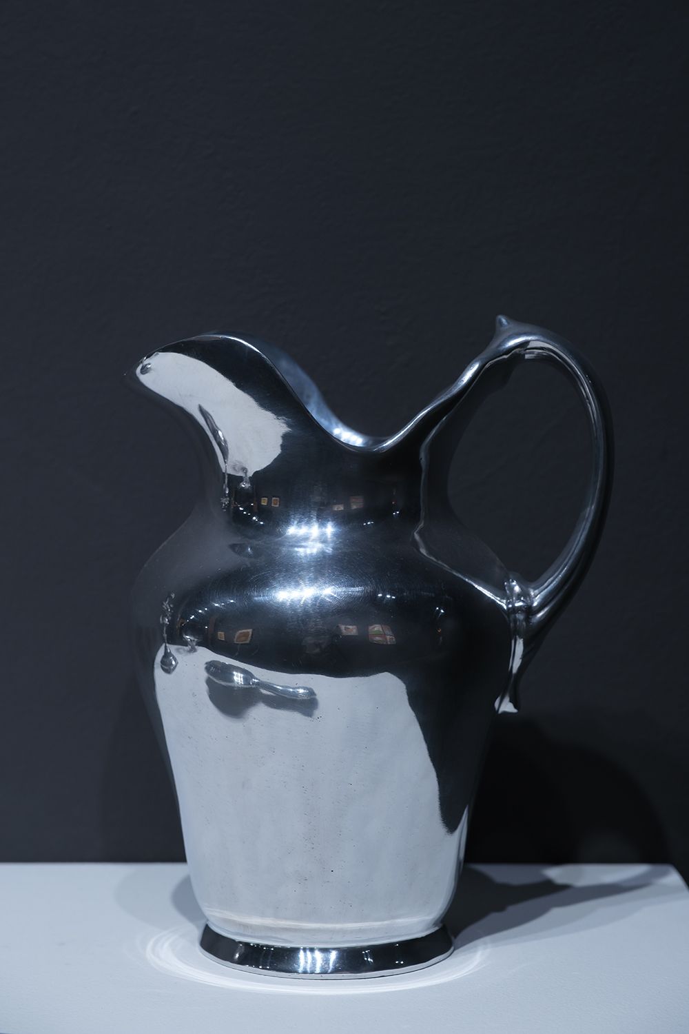 Still Life (Jug) – 2021, polished aluminum cast of a jug, made of melted coins, collected from the Balinese sacred fountains, W 20 x D 15 x H 28 cm, Edition of 5 + 2 AP