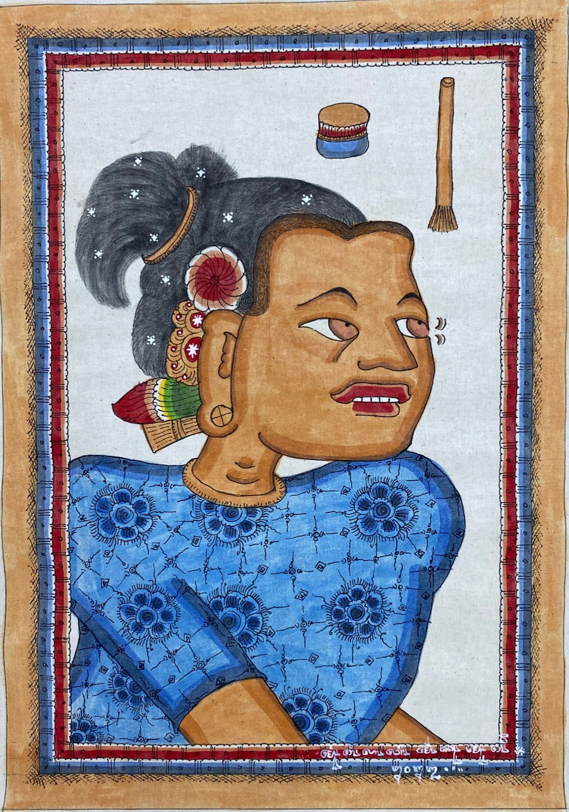 Self-Portrait – 2022, traditional Balinese paint on canvas, 55 x 40 cm