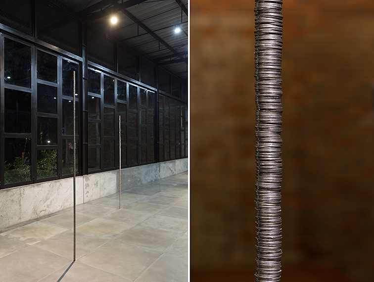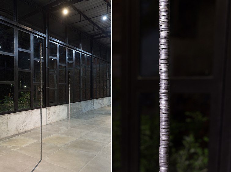 VAPRICO #157 (column), 2016, assisted readymade, coins of Rp. 1000,-, stainless steel and brass pipe, 233 x d 2,8 cm