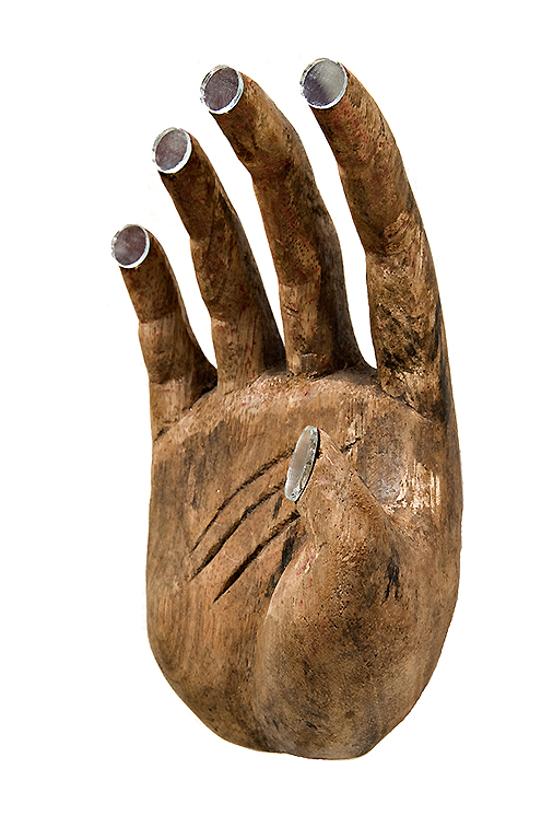 Gremano Esiatico, 2014, mirror pieces on readymade wood sculpture, 18 x 11 x 10 cm