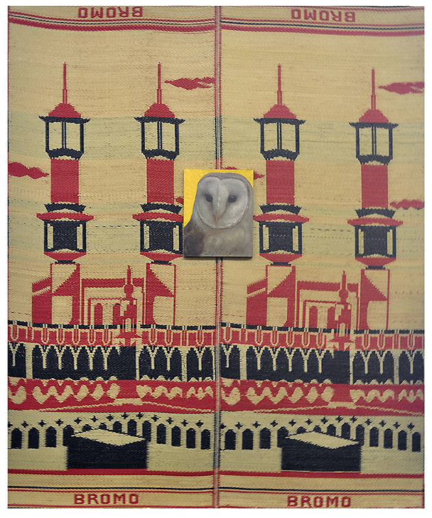 Untitled, 2016, assisted readymade oil painting on two floor mats, mounted on wood, 238 x 187 cm