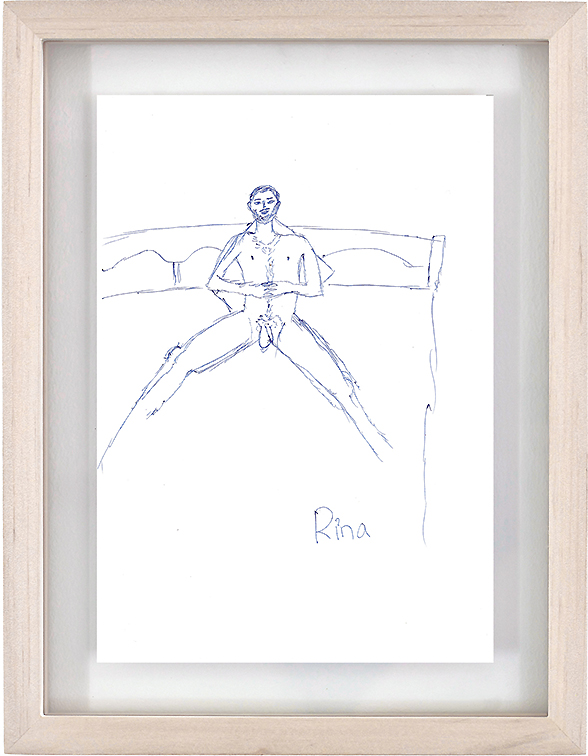 Les Demoiselles d'Orient (Rina), 2014, nude portrait of the artist, executed by Rina, ink on paper, framed 40 x 30 cm