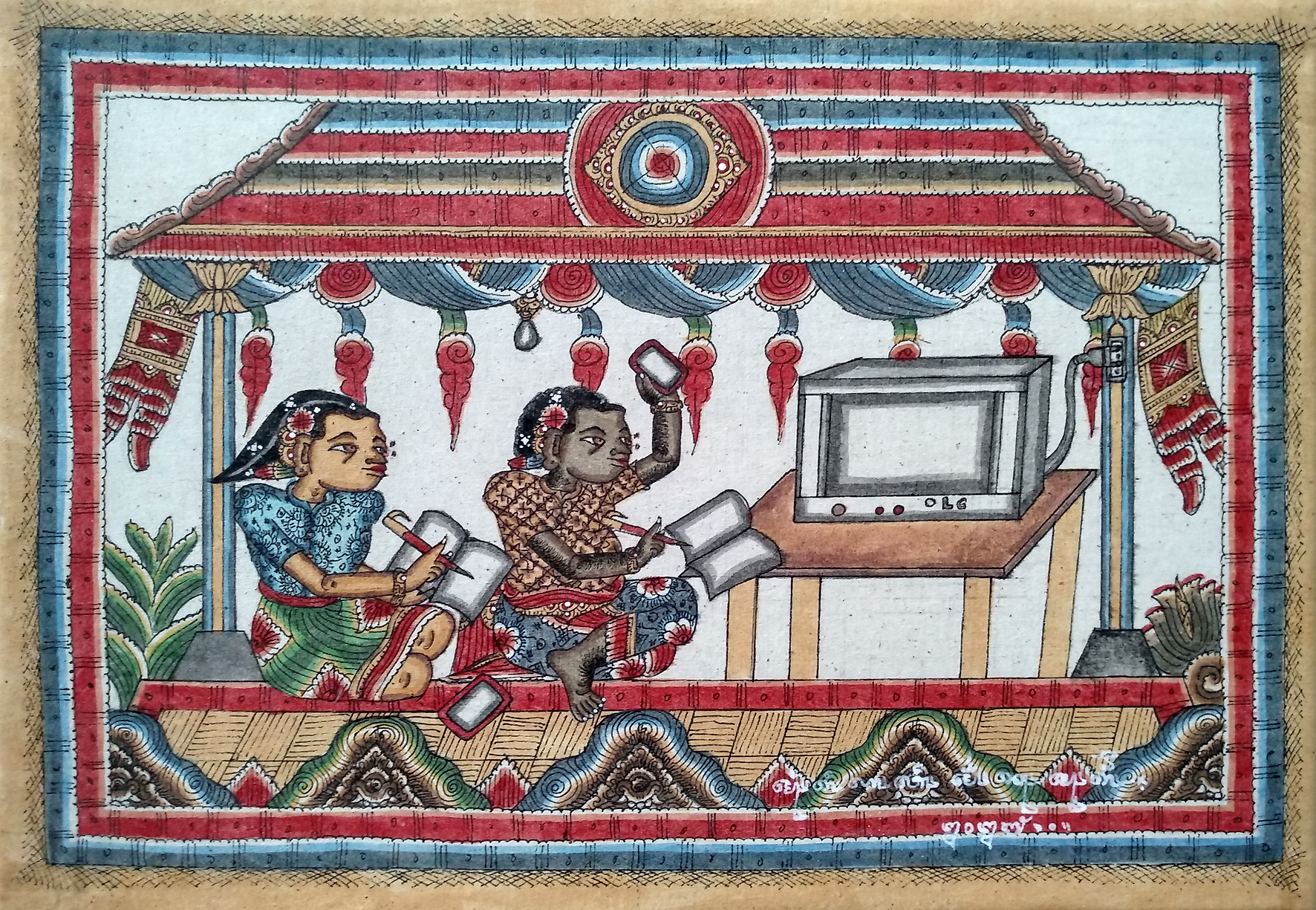 Manusia Rembulan / Moon People, 2015, traditional watercolour on canvas, H 59,5 x W 61,5 cm