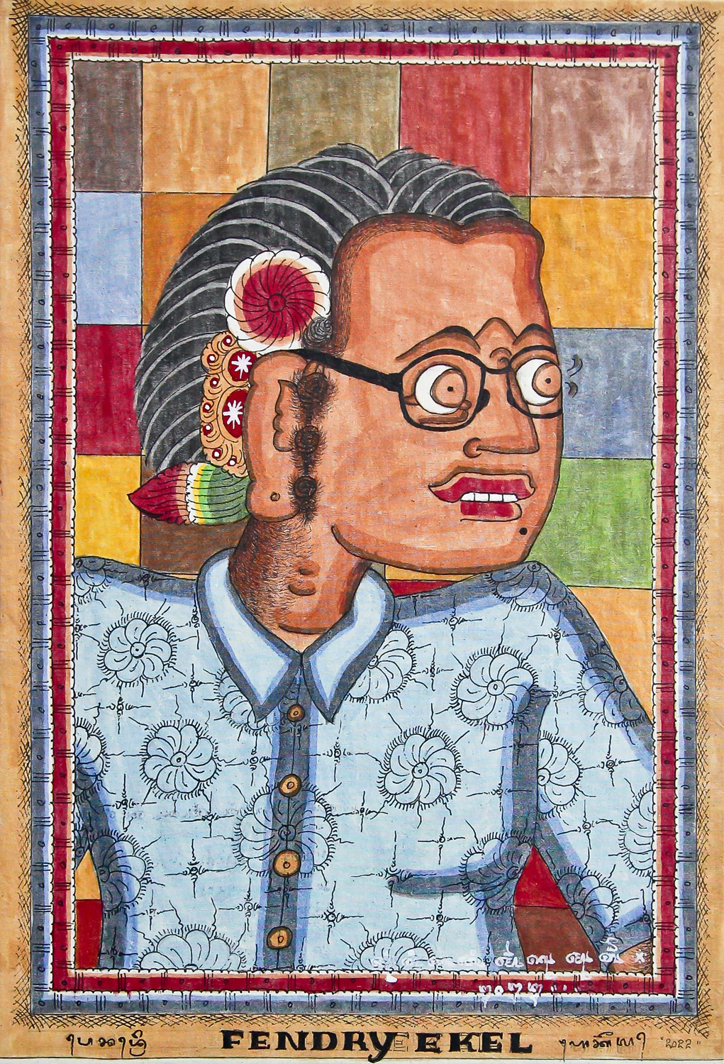 Portrait (Fendry Ekel), 2022, traditional Balinese paint on canvas, 50 x 34,5 cm