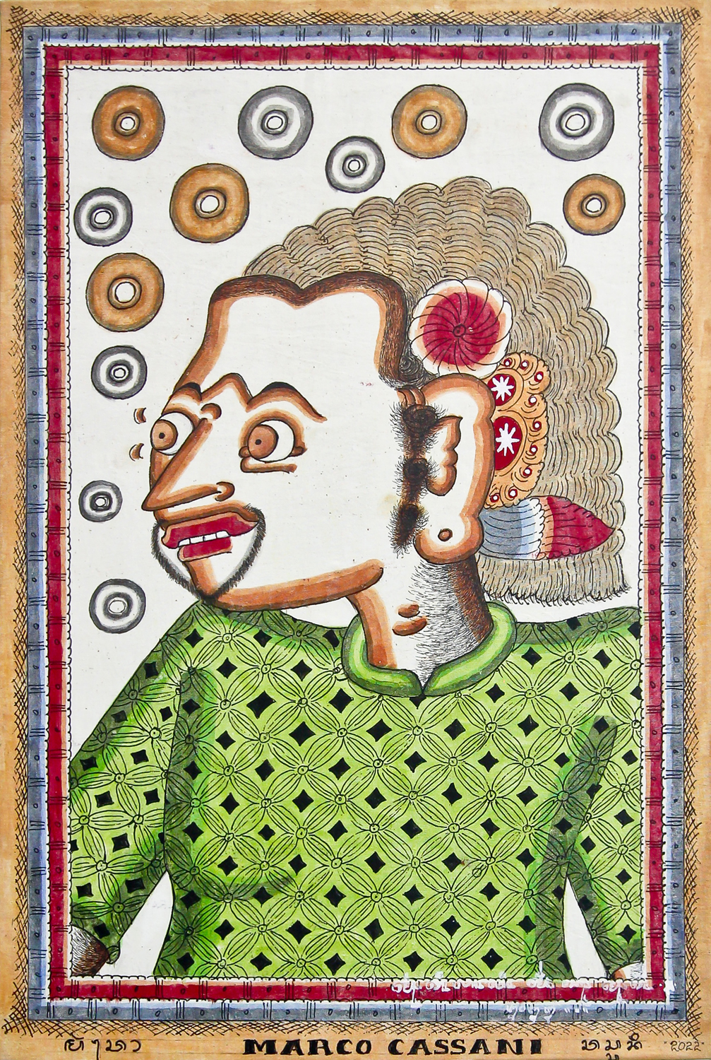 Portrait (Marco Cassani), 2022, traditional Balinese paint on canvas, 50 x 34,5 cm